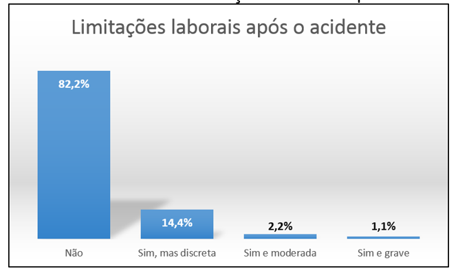 De igual forma também se percebeu que trabalhadores com limitações pós-sinistro também valorizavam mais os seus riscos laborais, ainda que sem diferenças significativas, usando o Teste de Correlação de Spearman, o que está em sintonia com o descrito pelos investigadores do tema.