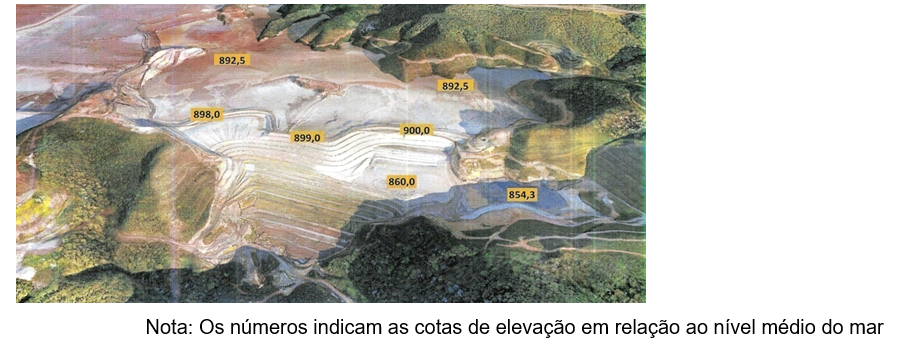 No dia do rompimento, a crista da BRF estava na elevação entre 898 metros e 900 metros, ou seja, altura entre 106 metros e 108 metros a partir de sua base, que ficava na elevação 792 metros.