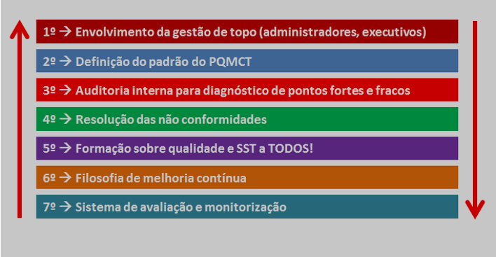Como base para um PQMCT temos por exemplo as normas ISO 9001 e as OSHAS 18001.