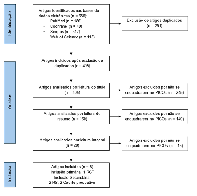 Para responder a esta questão foi realizada uma pesquisa abrangente nas bases de dados PubMed, The Cochrane Library, Scopus e Web of Science, limitada a artigos publicados no período entre janeiro de 2010 e outubro de 2025, redigidos em português, inglês ou espanhol.